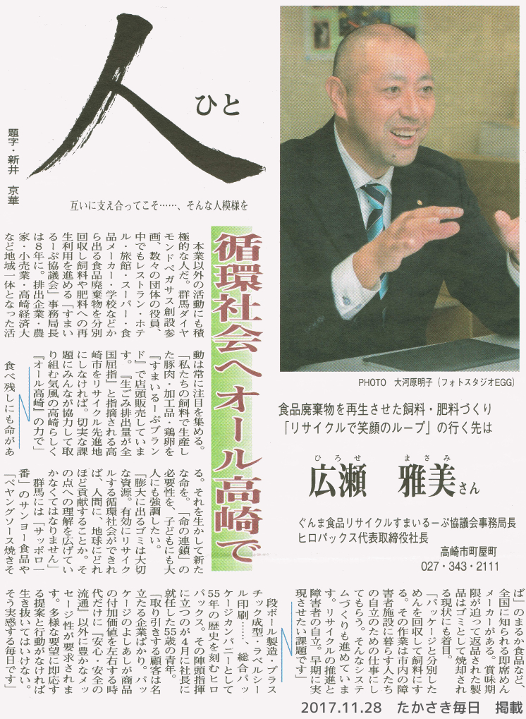 食品廃棄物を再生させた飼料・肥料づくりの記事がたかさき毎日に掲載されました